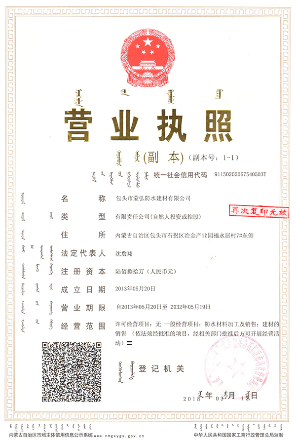 蒙弘防水建材營業執照